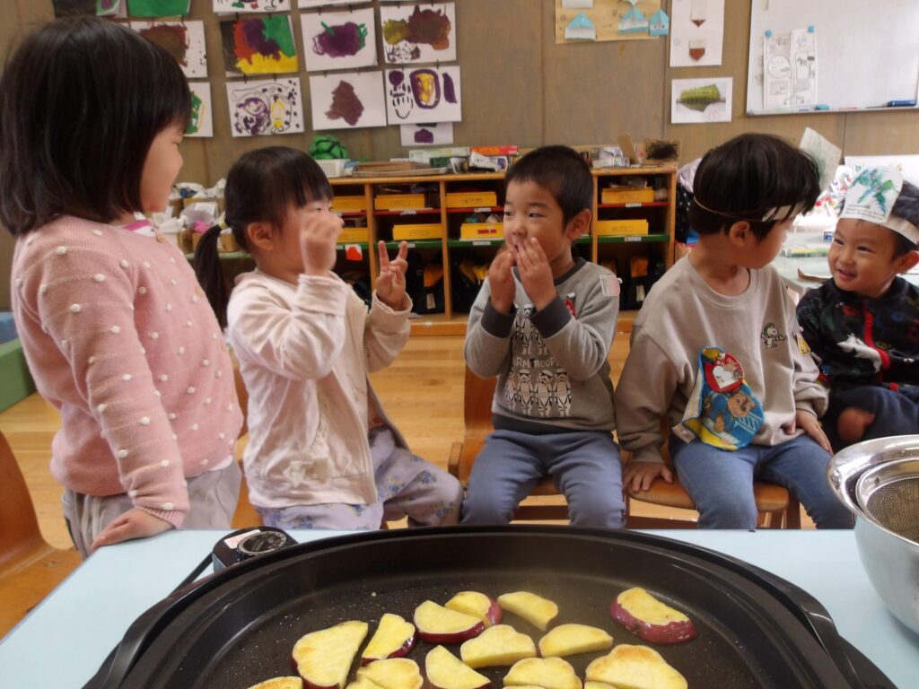 さて、他のクラスでは、このえのぐの後のさつま芋を、もう少し調理して食べていました。その様子をご紹介します。