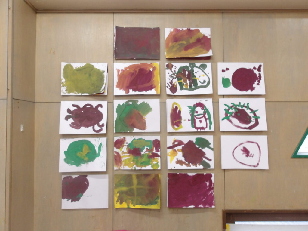 みんな、やはり絵の具が大好きな子が多いようで、えのぐの部屋がいっぱいでも、“待ってる!!”と待ち合い席ができる程でした。ゆっくり描けるといいな、と2人ずつ位で描いていきました。