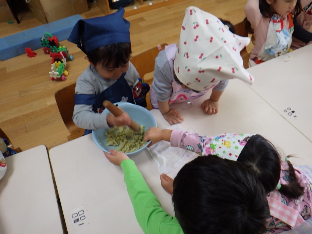 今回子どもたちにやってもらったのは、つぶすこととまるめること。と~っても甘くておいしかったです。